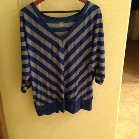 Blue and white off the shoulder 3/4 sleeve shirt