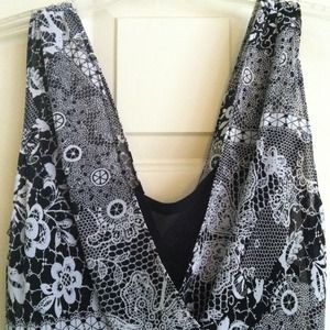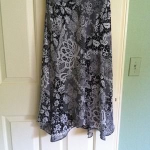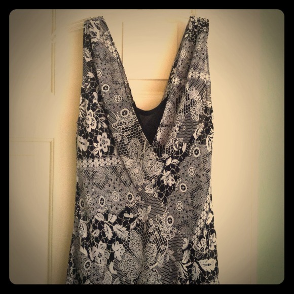 I bought this on poshmark. It's too big for me. It's a gorgeous dress. Has a detached black slip underneath. It says it's medium. But fits more like a M/L. I'm 5'2 and it goes down to the middle of my calves.