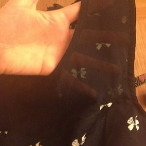 Dark navy blue dress polka dotted with bows! Only wore once. Purchased from F21. The very too around the shoulders is see-through.