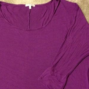 Roomy and soft, long sleeved, purple scoop neck T. Great over a tank with jeans. Misses XL