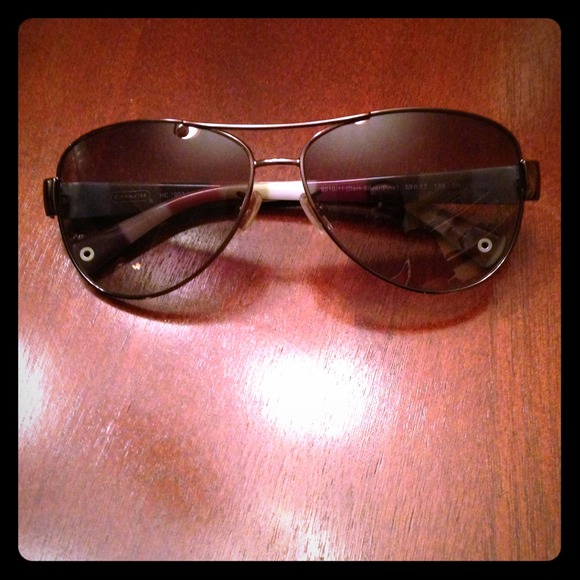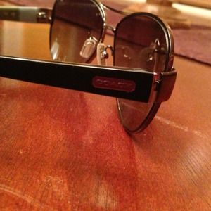 Brand new Coach sunglasses never worn. I don't have the box. Inside has the colorful COACH stripes outside days COACH I'm a deep purplish color :)