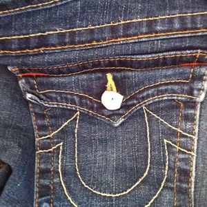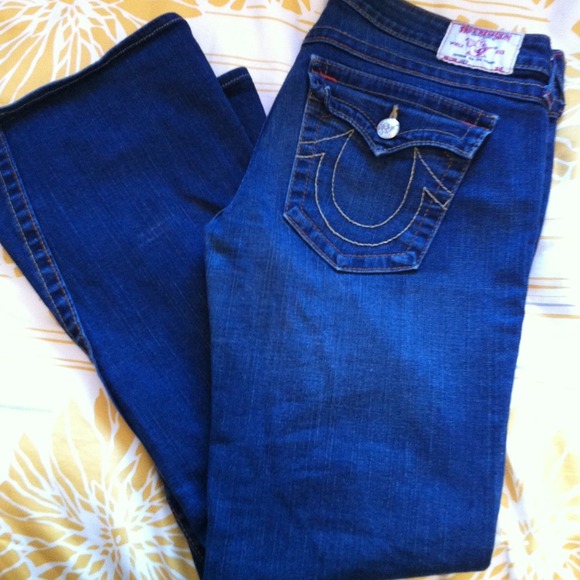 In very good condition!! Dark rinse Joey. However, there is a button off on the back pocket! I have the button it just needs to be glued on. Other than that, nothing is wrong. Price is firm.