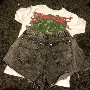 Vintage Sasson acid wash high waisted shorts. Love these! But there to small for me😔Perfect for any occasion😊 note: the thigh width fits pretty big so these would be better for someone who has thicker thighs😍 Waist: 28" Hips: 36" Inseam: 2" Rise: 15" Thigh Width: 14"