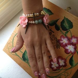 How feminine is this ! Roses , pearls , jades & spikes ! Armcandy is so in right now ! Collect them all :) 🌹💗💋