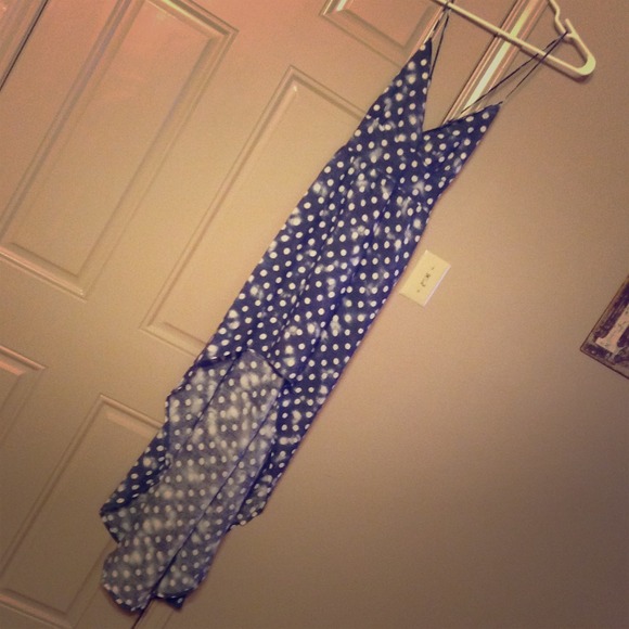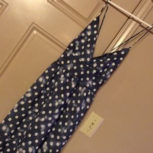 Navy and white polka dot, zips on side, adjustable straps, straps crisscross in back! WORN ONCE FOR PICTURES! Fits like small