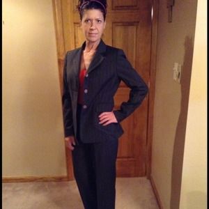 @nat0000 okay, finally I uploaded more pictures. Keep in mind I'm in a zero now and the suits are a size 4 so they are and look very big. So keep an open mind. I had to clip te pants so they didn't fall off of me. On all Kasper suits shoulder to shoulder is 16 inches, inseam is 30 and arm about 22 3/4. I just picked up everything from my sister last night. Okay, other suit pics to follow let me know if I missed any.