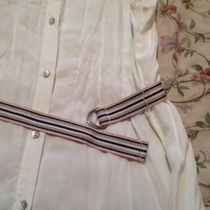 It really loose/flowy and fits like a n M or an L. It's been in my closet but it doesn't look right on me. i've worn it about 3 times. The belt didn't originally come with it but I'm throwing it in for free. Open to bundling. :)