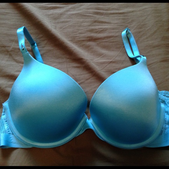 Beautiful aqua blue Biofit Demi Uplift with Lace bra from Victoria's Secret! No snags, no dents in the cups. Beautifully soft lace band with lining. VS Biofit printed inside cups.