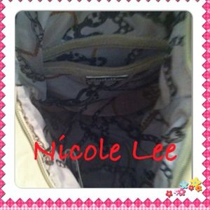 This is a beautiful bag!! Large bling detail on front... Zipper pocket and 2 cell pockets inside ... Large deep bag to carry all your goodies :)