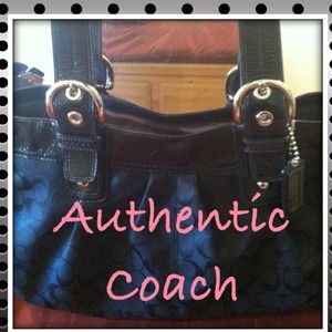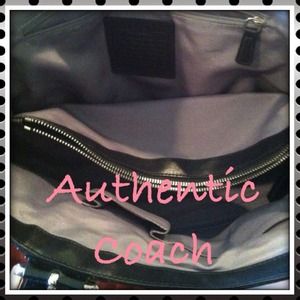 Authentic Coach Black large handbag...very good gently used condition.. Two sides with zipper pocket to separate inside.. 2 cell pockets and small zipper pocket inside