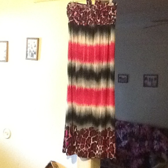 Cheetah pink and grey halter dress. It ties around the neck but could be worn as a tube dress if you wanted. Stretchy and Super cute but I have a lot of these and need the closet space. Lol