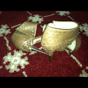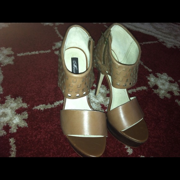 A leather upper with on trend geometric cut outs for a modern appeal , thick platform partners with towering high heel, and a side zipper for easy on and off , worn just once