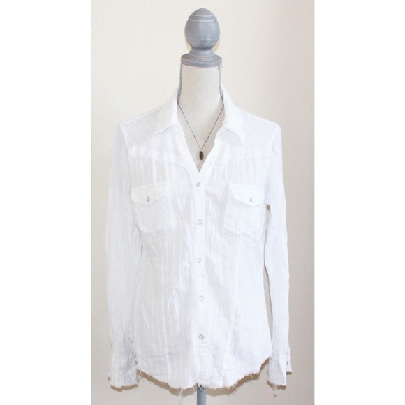 100% cotton, XL, bran new w/o tags, super cowgirl cute with fraying throughout, & snap closures.