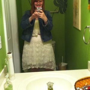 This beautiful white dress can be worn any season of the year. It's has lace. This dress also has a tail so that it can give your look some style.