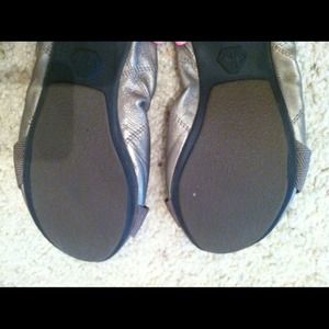 Puma ballet slip-ons. Like new -- worn once. In a versatile grey/olive metallic color. Size 6. LIGHT AND SO COMFORTABLE.