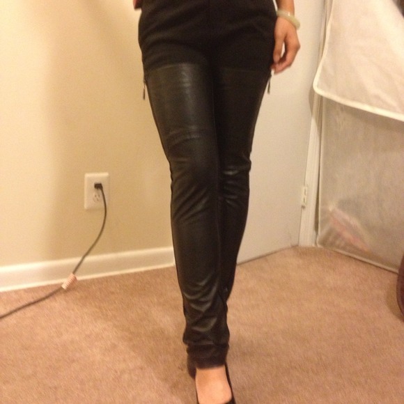 Upper part is cotton made and Lower part is leather. All black. Cool style and limited edition. Not seen everywhere. So unique!! Great condition