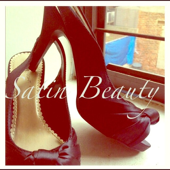 Perfect for next occasion🎀 *satin w an elegant knot detail *peep-toe *4" heel *worn once to wedding *super comfortable *feels very expensive and elegant *bought from Payless (Fioni Night) *SIZE 9W but can fit size 9 ❌NO TRADES ❌NO PAYPAL ❌ALL SALES ARW FINAL