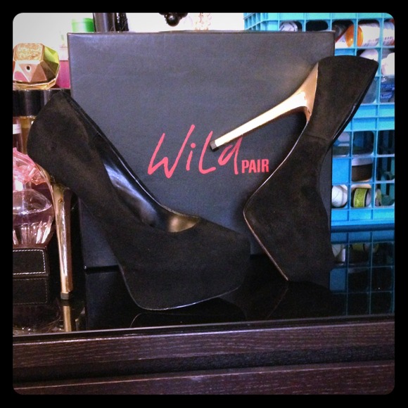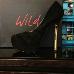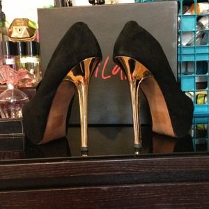 100% genuine black suede with gold chrome heels. These were the last pair in store, i had to have them..even though they are too big for me..I'm finally letting go.. 😭 These shoes go with EVERYTHING. Worn only once. EXCELLENT CONDITION!!! Really sad to let these go, but I know that one lucky poshmarker will show them the love they deserve 💗 ***size 8, but runs slightly large💕💕💕PRICE REDUCED OUT OF THE KINDNESS OF MY HEART💕💕💕