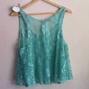 The Vintage Shop lace top that's oversized and very girlie. Looks cute over a simple white dress or a bandeau with shorts. Very beachy and summery.