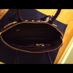 Beautiful satchel, new with tags, by Rebecca Minkoff. Unlined leather interior, with one zip compartment inside, and one on outside of bag. Lovely purple color. Gold hardware. 100% authentic...bought by me at a major department store.