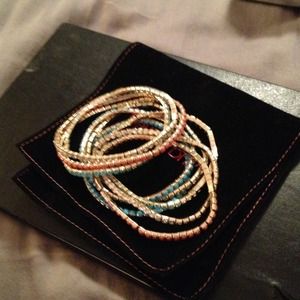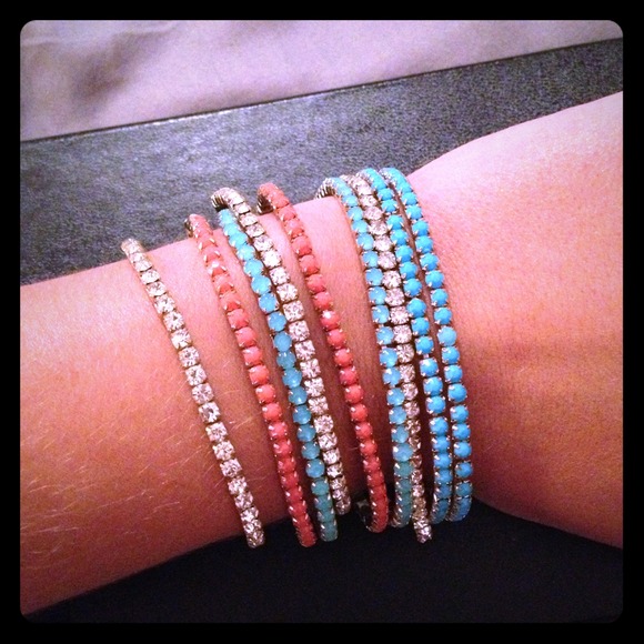 Coral/blue/faux diamond arm party! Stretch bracelets from Bauble Bar great condition and very fun!