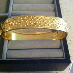 Gold coach bracelet...there are a few scratches, also there are some faded areas as seen in the pictures. Yes it's real but it's time for me to pass it on. I have had it for a while.