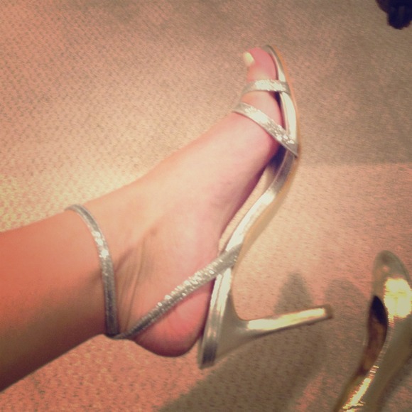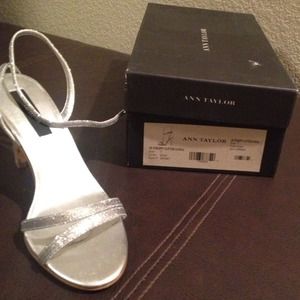 Silver glitter sandals from Ann Taylor. Worn once on my wedding day (Im a gold girl!)...great condition. Excellent for formal affairs or a night on the town.