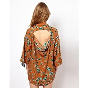 Open draped silhouette - super flattering and a statement piece! Fits an xs-m. Worn just once! Free people / nasty gal / urban outfitters / Brandy Melville / Shakuhachi