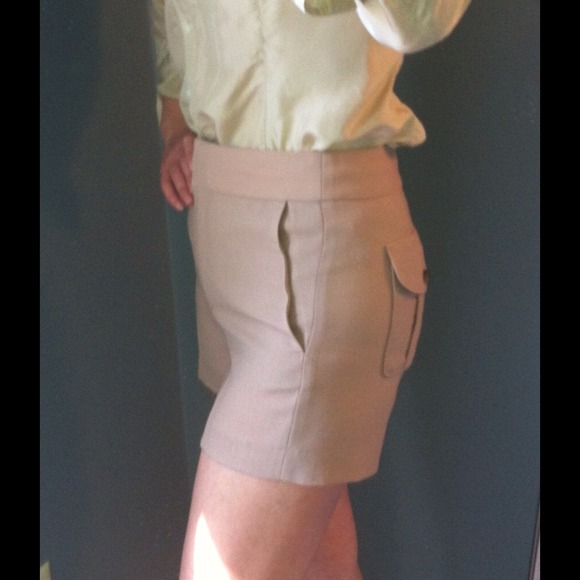 100% wool J.Crew fall shorts. Beautiful nude blush color. Military style pockets on back. These would be perfect with a blouse, cardigan, tights and heels, etc etc! Tags AND extra buttons