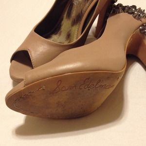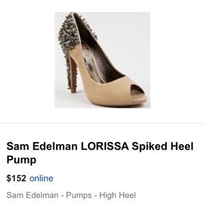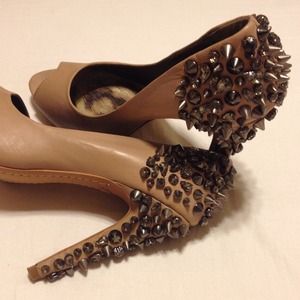 Nude pumps with spikes and rhinestones along the back and all the way down the heels. classic, yet fun! no damage, worn once.