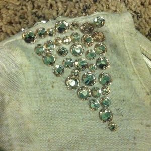 Like new/86% polyester/13% linen/ machine wash cold/delicate beading on shoulders.