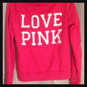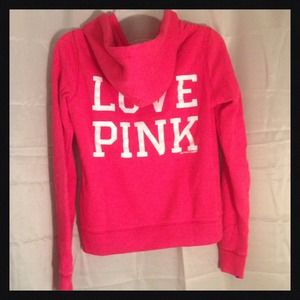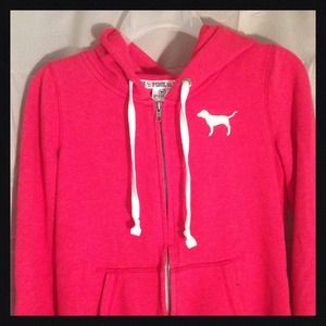 VS PINK Red Zip Up Hoodie. Has no rips, tears, or stains. Only general signs of being washed daily. Purchased from another Posher last year and red is just not my color. My loss is your gain. 😘💋
