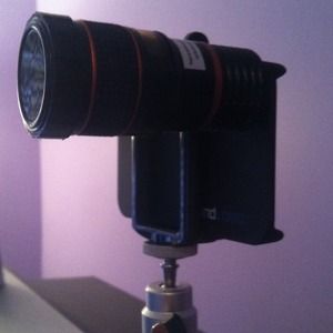 Comes with tripod, lens, and case. Never used it but I have tested it and it works great. 8x zoom and image still has great quality
