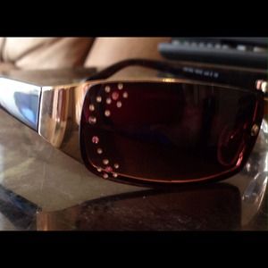 NWOT! A rose pink/gold finish with dark pink lens, & sweet pink sparkle on sides! *one side (in pic) is missing the screw*=easy fix