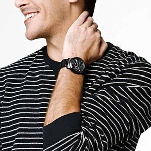 Its a black chronograph watch with a stainless steel strap more like dressy type but at the same time can be very casual. Its authentic and new never been used.