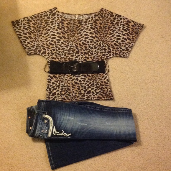 Really cute cheetah print shirt. Very good condition and says large but fits more like a medium.