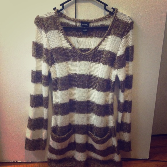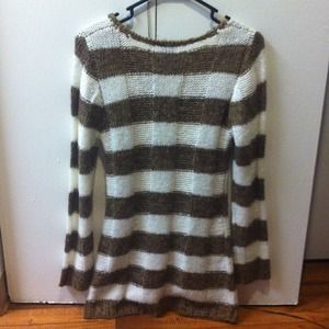 Brown and white striped sweater comfortable and stretchy while keeping its and your form. 2 lower functional pockets.