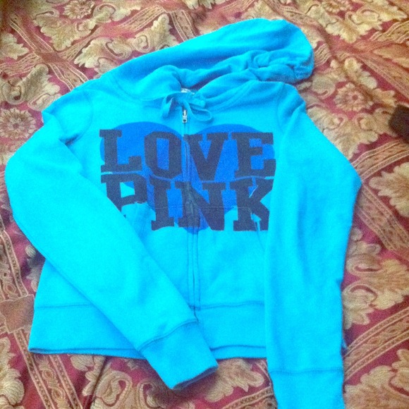 Victoria Secret PINK Hoodie in excellent condition. I'm having a hard time capturing the true color of the sweatshirt but it's like a teal blue color. Great addition to your VS collection.