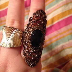 There not real gold of course but there gold color and super cute!! If you love vintage looking, chunky rings... Then these are for you!!' I'm not really sure about the size but my guess is about a 8, but they stretch so bigger works too!!!! Barley worn!!!