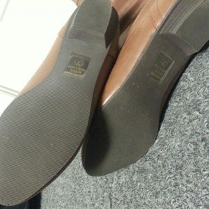 New condition, wore once. They are to small. Slight point in the toe. Straps in the back of the boot . Slighy heel