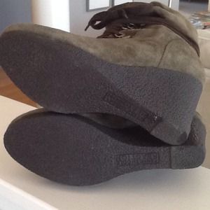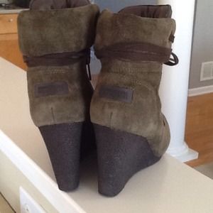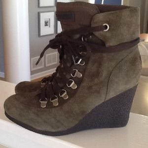 Rich olive green suede boot! Inside zipper, chocolate brown laces! Hate to sell but ordered them too big! Worn one time!