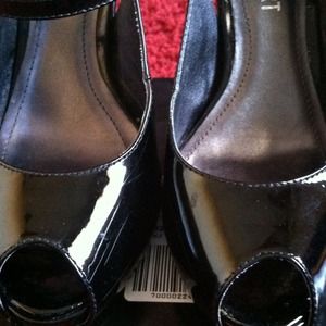 Victoria Secrets -Collin Stuart peep toe heels. Cute and comfy! Adjustable buckle. Gently worn about 4 times in great condition! Heel height approx 3.5-4 inch with an approx 1 inch front covered platform.