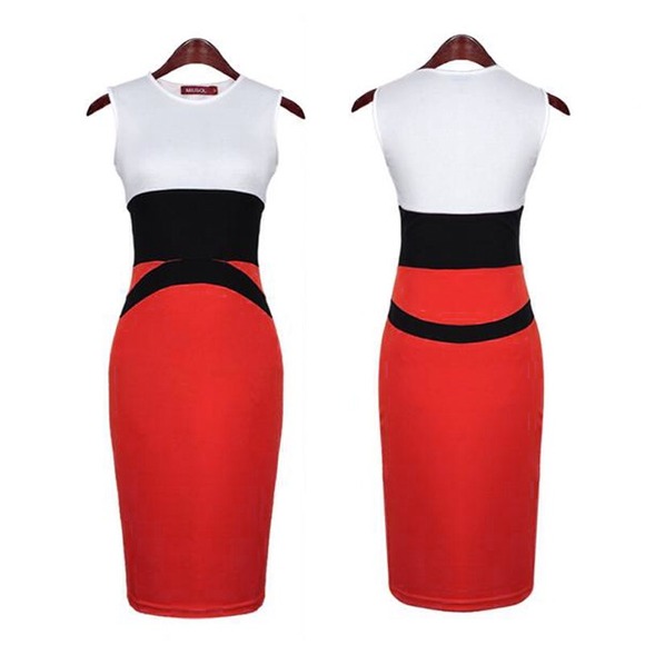 New with tags. Tag inside says Medium. Can fit between a larger Small-Medium. White detailing top with black waisted cinch and red skirt dress.