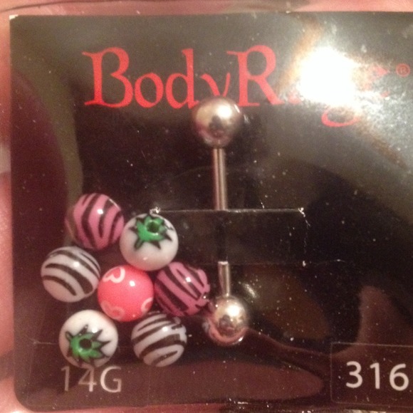 New in package never opened or used has metal bar bell with 8 different balls from spencers