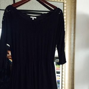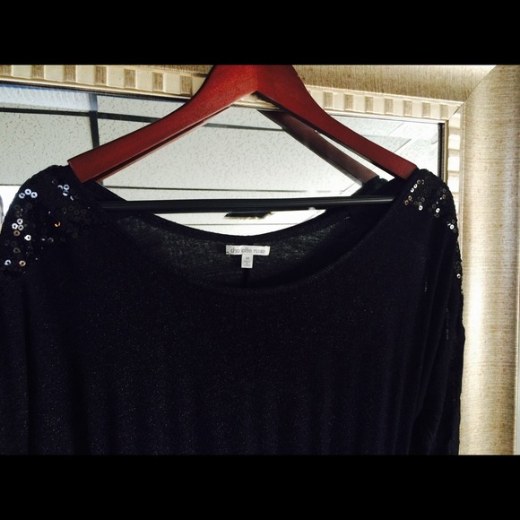 Jersey stretch dress with 3/4 sequined shouldered sleeves. Simple and elegant!
