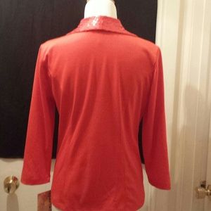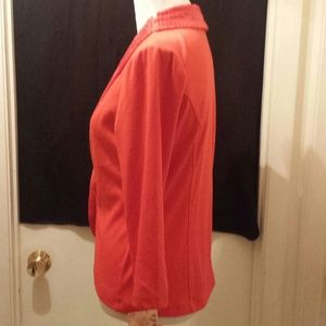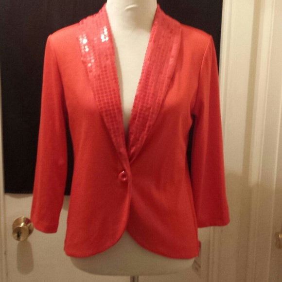 Beautiful hottomale spandex stencil blazer. has one button in the front. Blazer is a large, but not true to size. It stretches with you, but fits more like a medium.