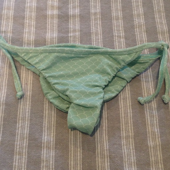 $30pp Posh Pua Pualei String Bottom, Small. One of the many bikinis that i cut the tag off of and never wore. Cute mermaid print. Seafoam color. Great condition.