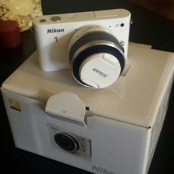 White Nikon J1 model camera. All accessories included. VR 10-30mm (Brand new condition) taken out of the box to test.