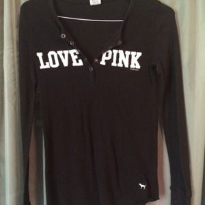 Very cute black Henley long sleeve top from Victoria's Secret Pink. Usually wear this with a colored tank underneath to give a pop of color. Love this top but it needs a new home. Perfect condition! ππ