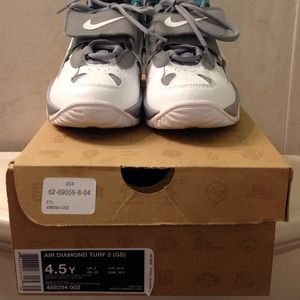 Great condition , comfortable and cute . Size 4.5Y gs , can fit like a women's 6.5. Comes with box . #nike #diamondturf #sportshoe #sneakers